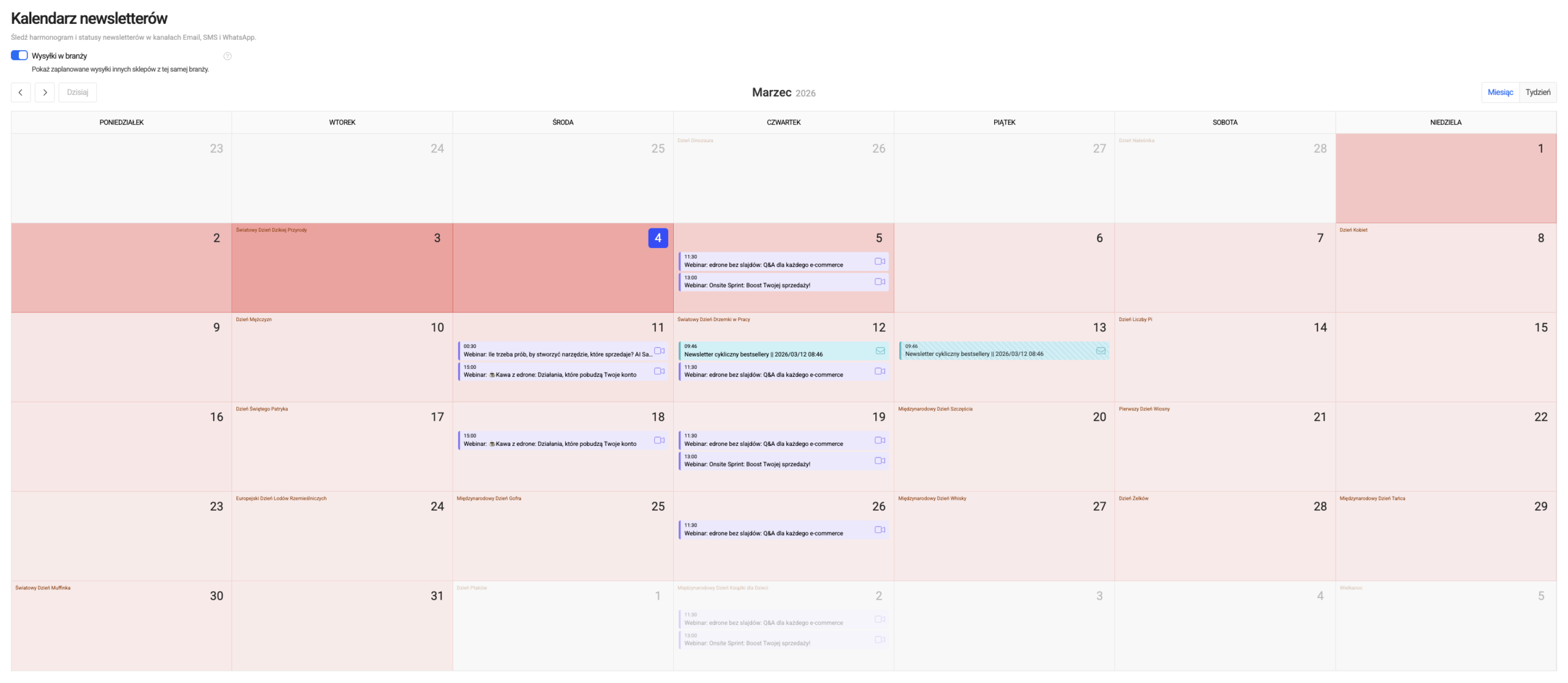 To interaktywny kalendarz wysyłek newsletterów, w którym: